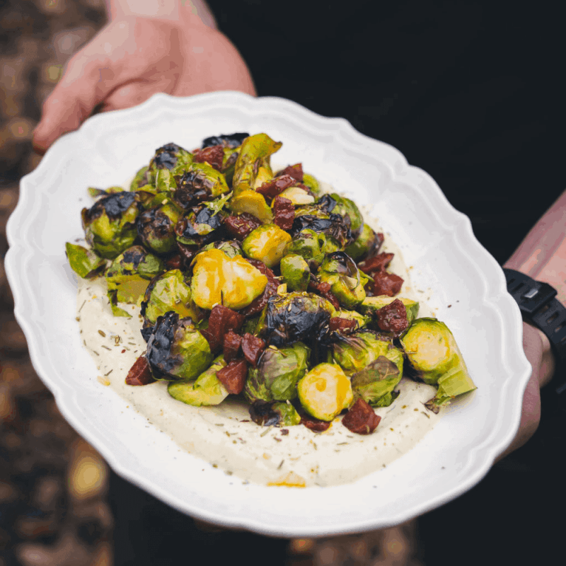 Sprout trees are great charred over the hot embers, it really couldn’t be simpler. No need to pre-cook the sprouts, just throw them straight on the grill with a little drizzle of rapeseed oil. Our Chilli, Fennel and Orange seasoning along with the chorizo add a real warmth to the finished dish. If you have veggie guests then just omit the chorizo from the recipe.