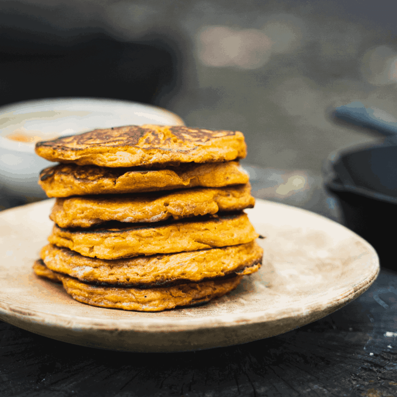 These coal baked sweet potato pancakes are a firm favourite here at The Salt Box. Coal baking the sweet potatoes allows the insides to become buttery soft and ever so slightly smokey. The coal baking of the potatoes can be done the evening before whilst the fire begins to die down and the beers are flowing (just remember to remove them before tucking yourself in for the evening).