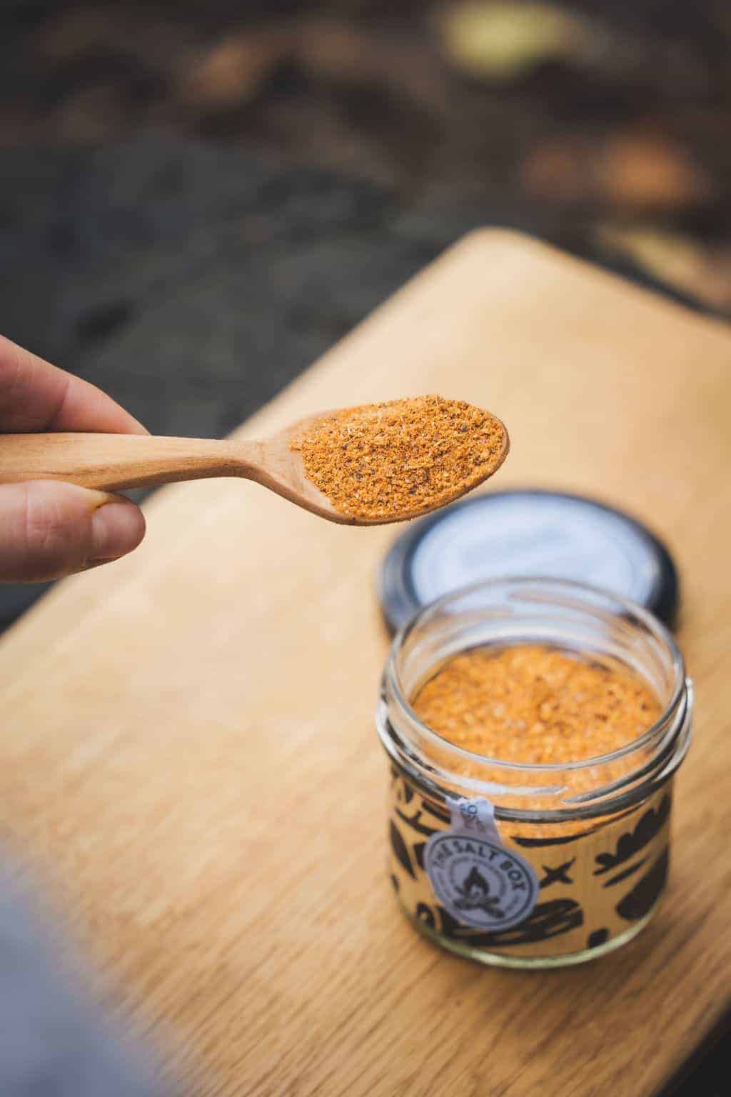 Ingredients: Black Peppercorn, Coriander Seed, Brown Sugar, Kosher Sea Salt (E536), Smoked Paprika, Garlic Granules, Onion Powder, Mustard Powder