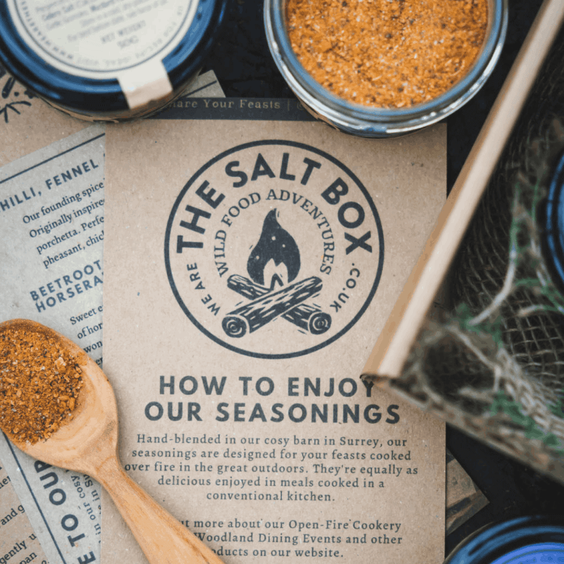 The Salt Box is a celebration of seasonal food and open-fire cookery through the coming together of people beneath the trees, creating delicious food from nature’s humble ingredients. We celebrate locally sourced and wild ingredients through our wide range of courses and dining events, in the great outdoors surrounded by crackling fires.