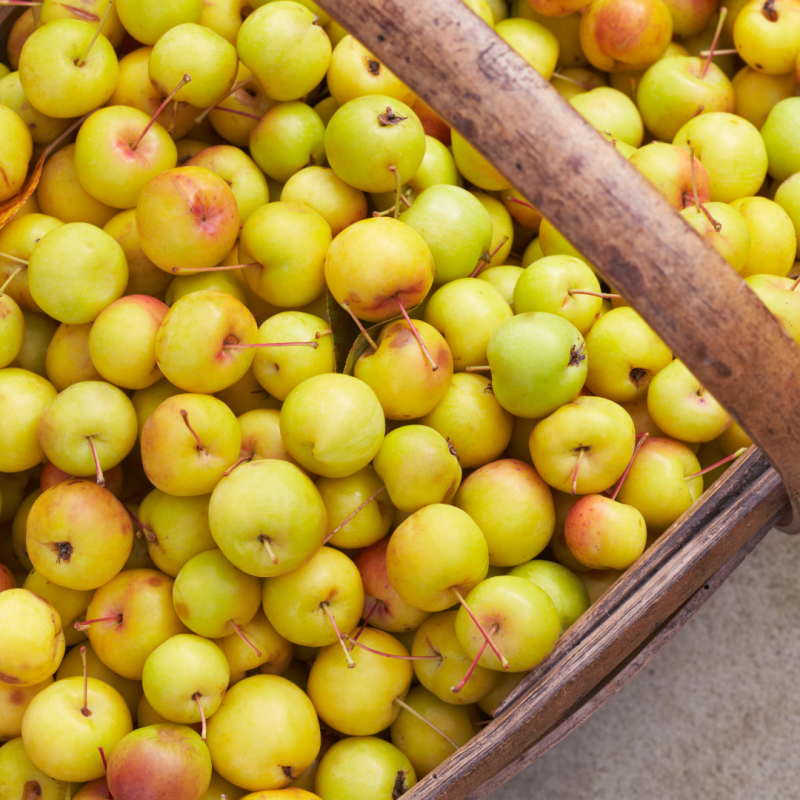 Crab Apples are no exception, high in vitamins A, C and D, which our bodies need for a strong immune system. The high pectin acts as a prebiotic, helping to maintain good gut health. Also rich in polyphenols (which have antioxidant effects) and soluble fiber (which can help lower cholesterol levels).